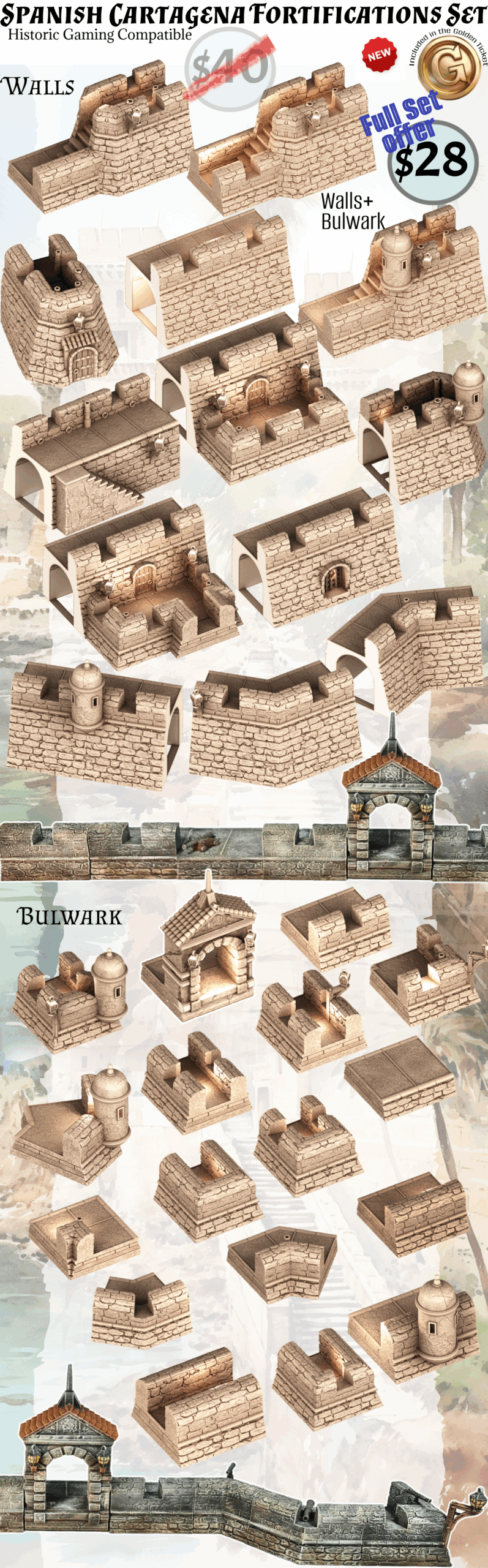 Lifetime license to commercially 3D print and sell ‘Cartagena Fortifications Set’ physically printed models.